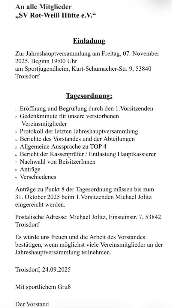 Allgemein Einladung Jahreshauptversammlung 4 Monaten ago Florian Schopp Continue Reading Previous Sportwoche 13.08.-17.08.2025Next Alija Zahirovic übernimmt 1. Mannschaft More Stories Allgemein RWH x STEGIS KICKER 3 Wochen ago Florian Schopp Allgemein Frohe Weihnachten 1 Monat ago Florian Schopp Allgemein Alija Zahirovic übernimmt 1. Mannschaft 3 Monaten ago Florian Schopp